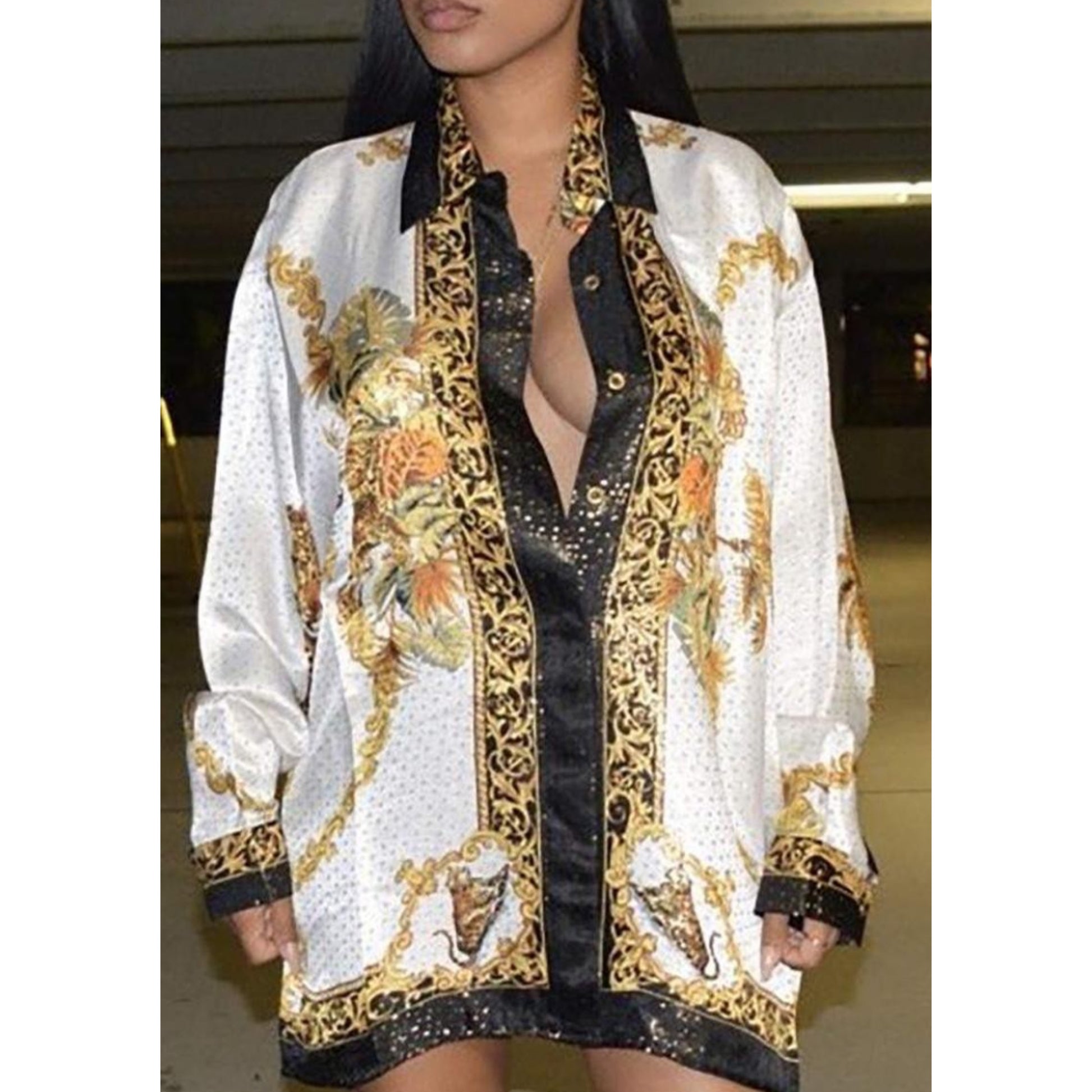 Print Button Dress White