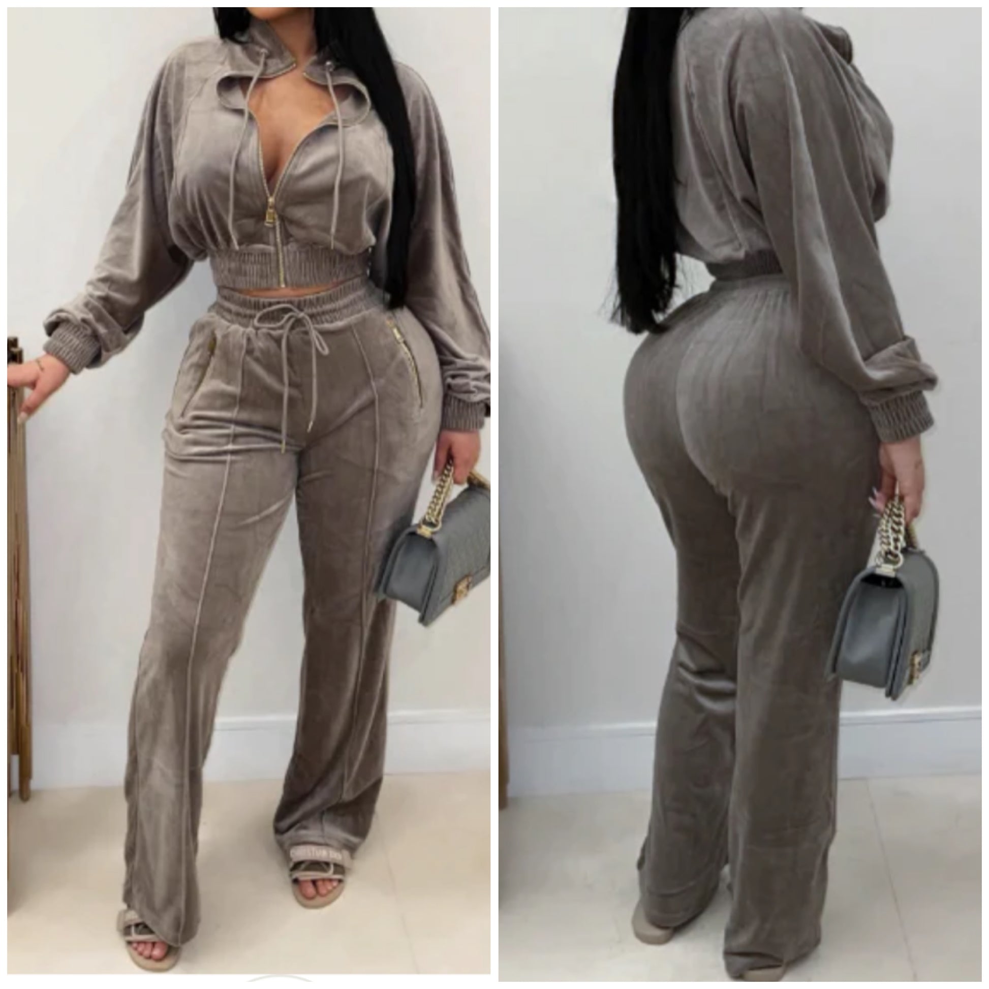 Soft Velour -Front full zip closure- gold zippers- funnel neck - pockets